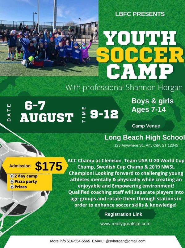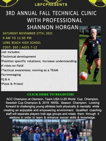 Please see the attached flyer for the 3rd Annual Technical Soccer Clinic being run by Long Beach's own Shannon Horgan. Saturday, November 27, 2021 9:00 am to 11:30 am Long Beach High School Turf Field